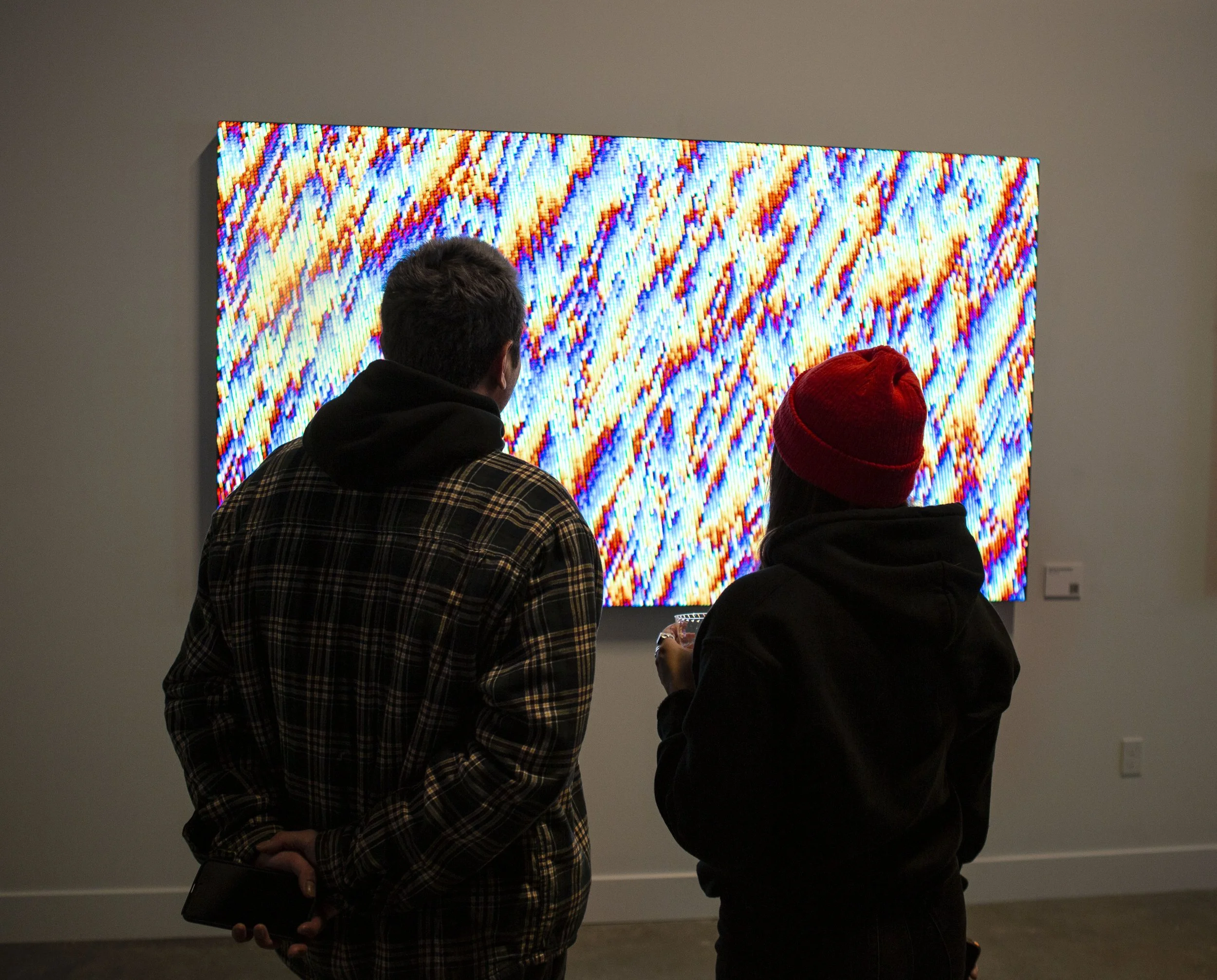 The private viewing reception on Dec 9 will also feature a one-day immersive pop-up installation of CONTINUUM by Krista Kim. CONTINUUM is a meditative generated animation by Krista Kim in collaboration with Efren Mur. With original music composed by Smashing Pumpkins guitarist Jeff Schroeder, CONTINUUM will be displayed on a 600 sq ft panoramic LED wall for one night only