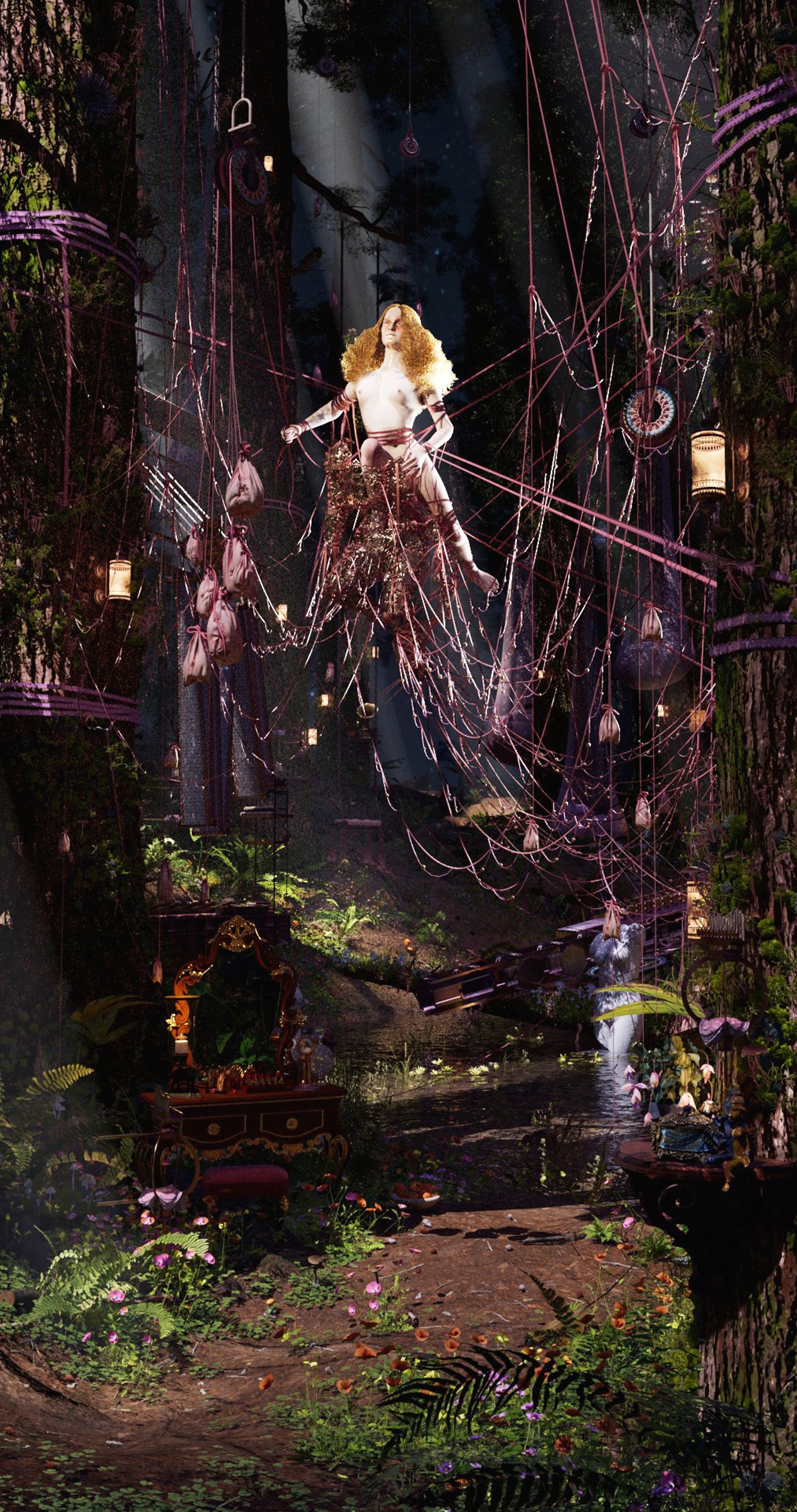Enrique Agudo’s Ipseity series hinges greatly on the development of digital costumes with intricate detail as a narrative tool; as a way to convey the power of identity and to embolden us to embrace storytelling through digital couture, as the power of the digital becomes omnipresent in our culture. Every detail tells a story, drawing from references throughout the history of fashion, art and philosophy, while inviting the audience to visualize their own narrative onto them.