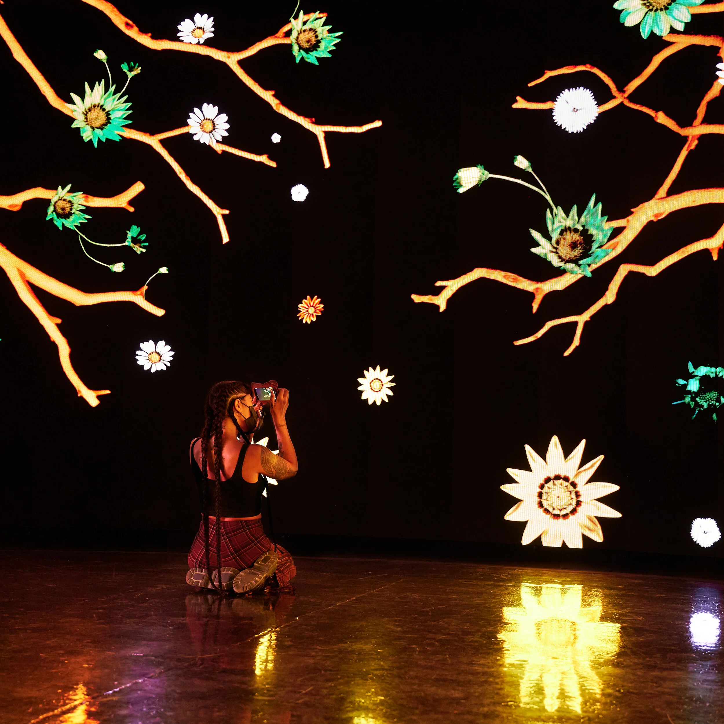 Eternal Garden is a surreal digital landscape created by combining colorful time-lapse photography. Throughout the pandemic, West photographed flowers from her garden under a spectrum of colored lights, capturing the growth process while altering the visual properties of each plant. The footage was then combined into surreal floral landscapes; blooming and evolving before the viewer’s eyes.